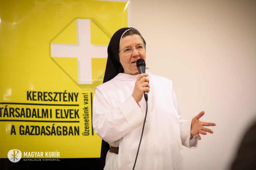 Baritz Sarolta Laura domonkos nővér, a képzés megalapítója és vezetője köszöntőjében elmondta, hogy Sulok Zoltánnal a tavaly júniusban a tihanyi apátságban megrendezett konferencián ismerkedett meg, amelyen a fenntartható fejlődésről volt szó; akkor határozta el, hogy felkéri előadónak.